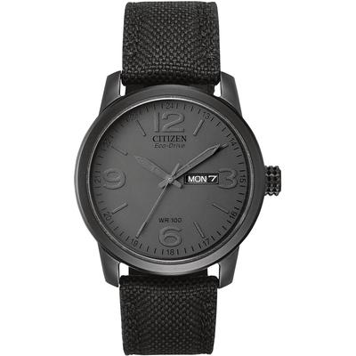 Citizen - Men's Chandler Military-Style Eco-Drive Watch with Black Strap and Khaki Dial - BM8475-00F