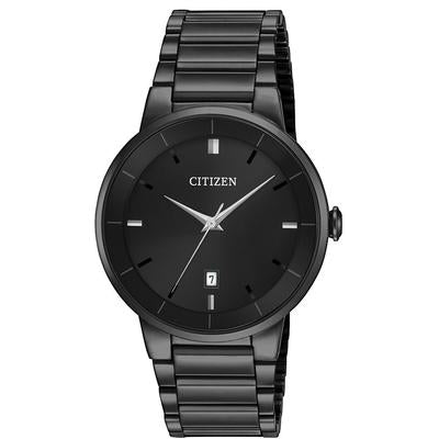 Citizen Men's Quartz Watch with black ion-plated stainless steel case and bracelet with black-tone dial. Date feature. Water resistant to 50 meters.