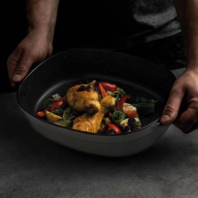 - Its wide handles help you to get a good grip on the dish while the enamel coating makes sure you can easily scoop your food from the dish and dont need to spend more than a minute on the clean-up.