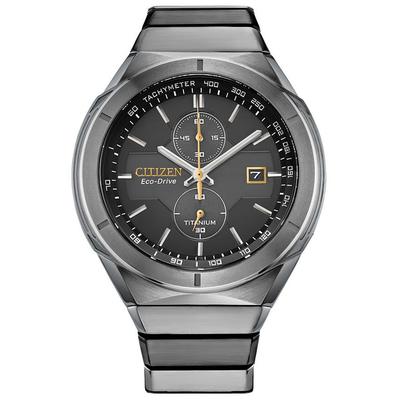Citizen's Super Titanium Armor timepiece is an elegant addition to any watch collection. The Super Titanium two-tone band complements a Super Titanium case and black face. Advanced features include a chronograph, as well as a three-hand dial, rotating bezel and date. It also uses Eco-Drive technology to power this sophisticated timepiece with light.