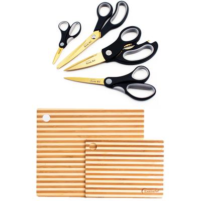 - This set includes 4-piece scissor set and 2 bamboo boards (11"x 9", 8"x 6").- Packaging: Carton