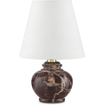 The Piccolo Brown Mini Table Lamp is a very petite maroon lamp made of Red Levanto marble that was modeled after a vintage design owned by a member of the Currey & Company product development team.