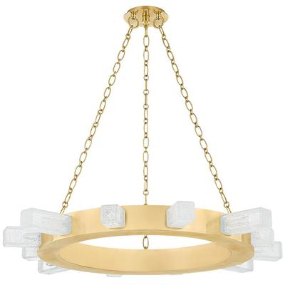 - Sure to be the centerpiece of any ceiling, this on-trend, striking chandelier features rectangular glass cubes projecting from a thick ring of Vintage Brass.
