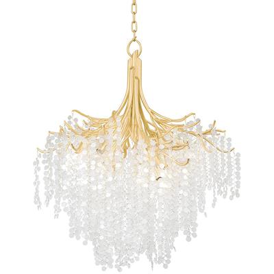 - Individual drops of clear and frosted glass are intricately strung through delicate threads of Gold Leaf for a striking, weeping willow-inspired silhouette.