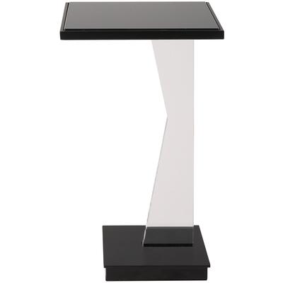 An ode to contemporary styling, our Angle accent table showcases a gravity defying design featuring a clear angular support. Top is black mirror with a coordinating black metal base. Packaging