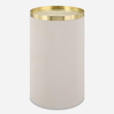 Featuring a lipped top in iron with a beautiful plated brushed brass finish, atop a base wrapped in white faux shagreen. Packaging