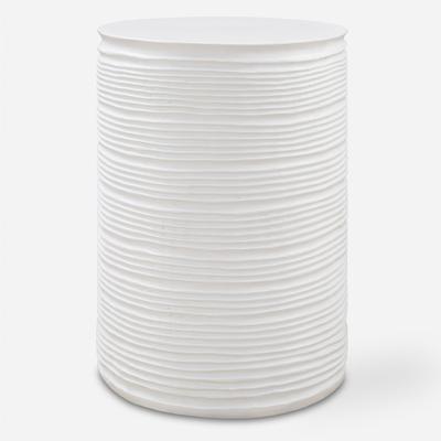 Formed from cast resin, this accent table displays its depth and detail through recessed grooves along its sides, finished in plaster white. Such captivating depth gives the table the ability to refine almost any space. Packaging
