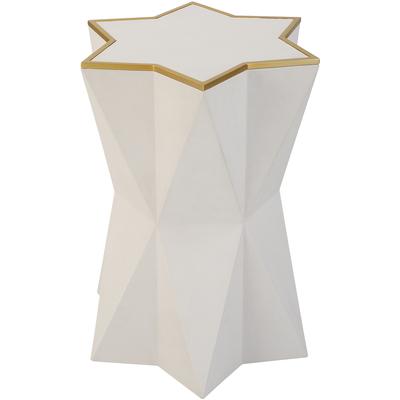 Unique star shaped accent table features a stylish white faux shagreen wrap, accented with a hand applied gold leaf trim. Packaging